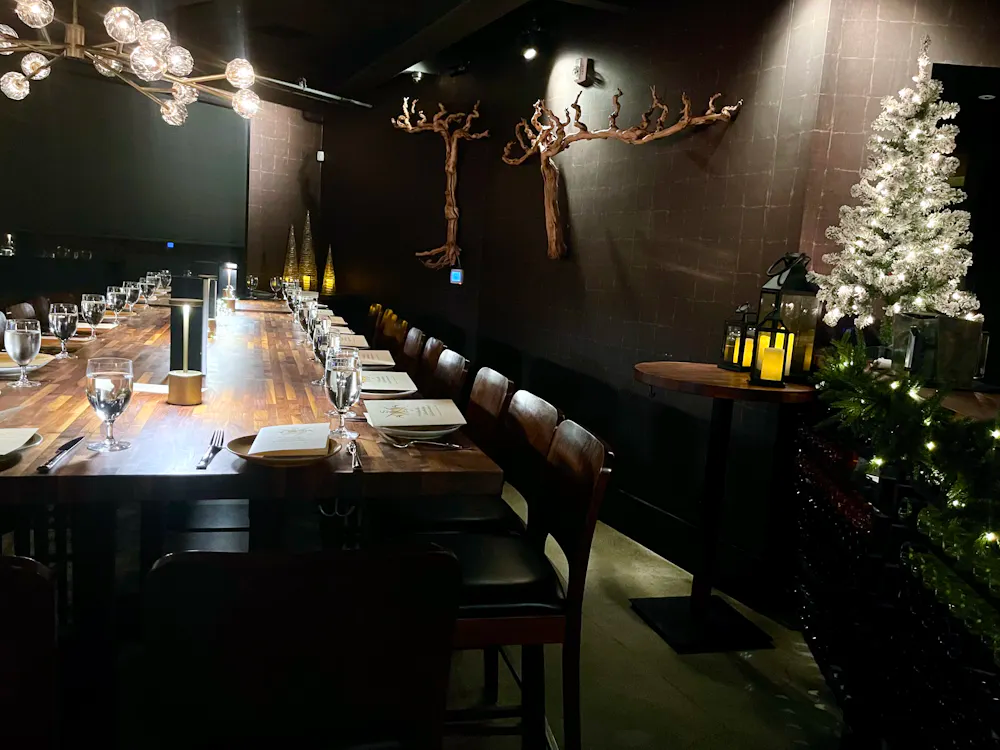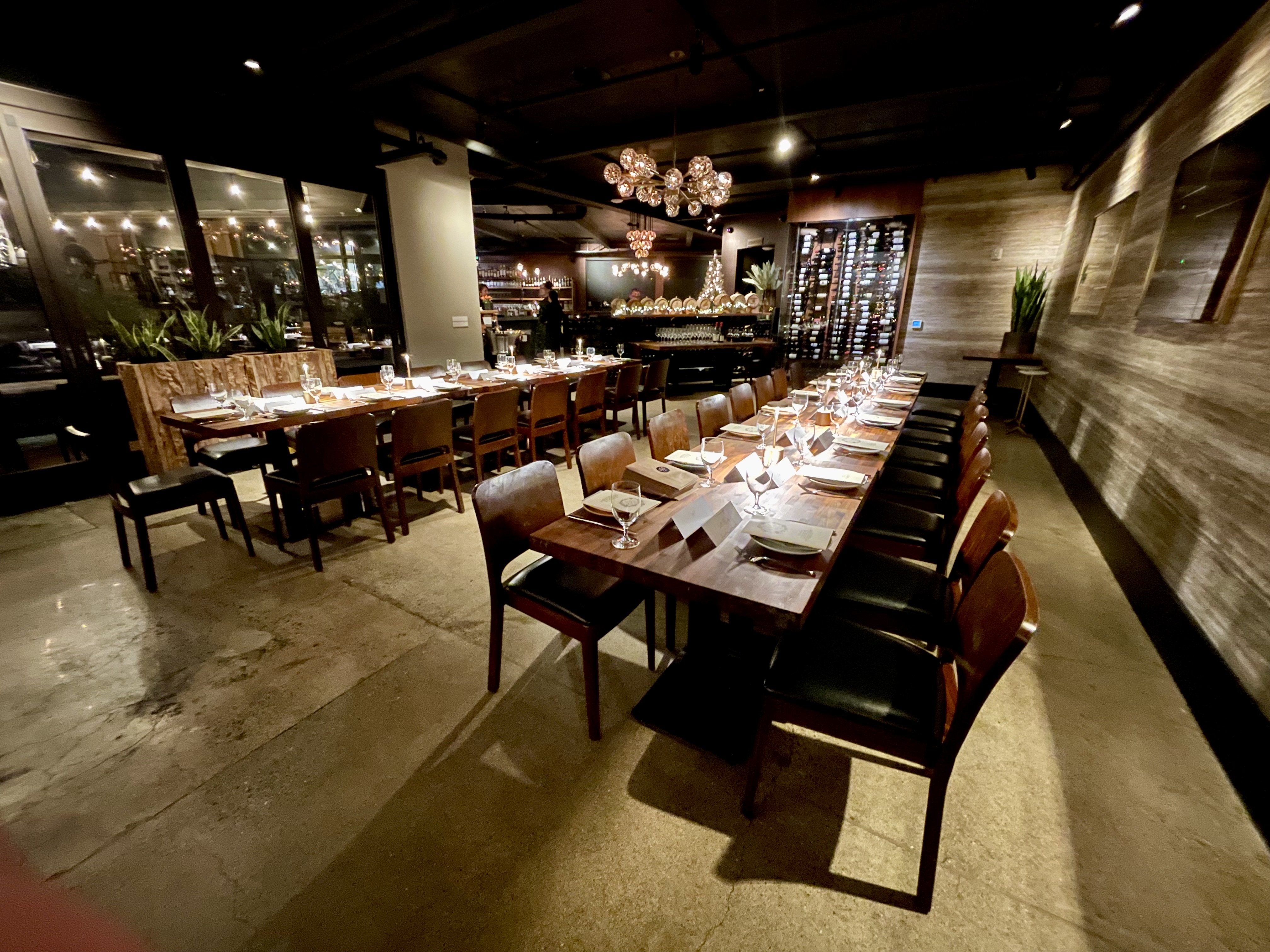 The main dining room. Enjoy the view of our wine wall and barrel aging cocktails.