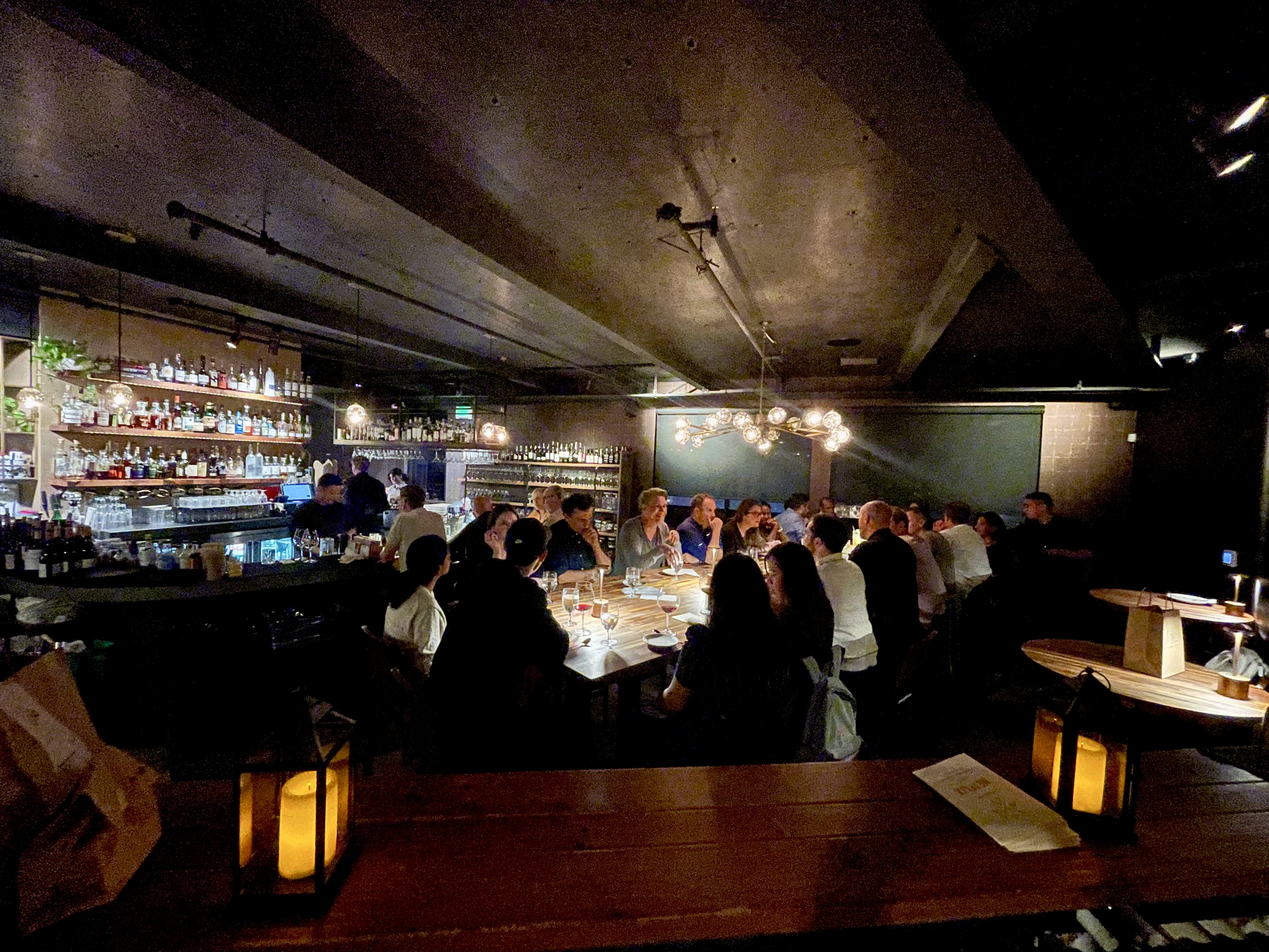 The bar / lounge offers full service dining. Tall tables are available for reservation. The large communal table is also available for booking all group sizes (12-24 max). This can be considered a semi private dining space in the restaurant. Please contact to enquire.